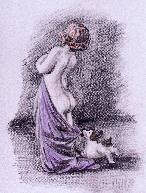 | 2014春のLladroスケッチの淡彩化。 原画ではなく普通紙にプリントしてから色鉛筆で。 |